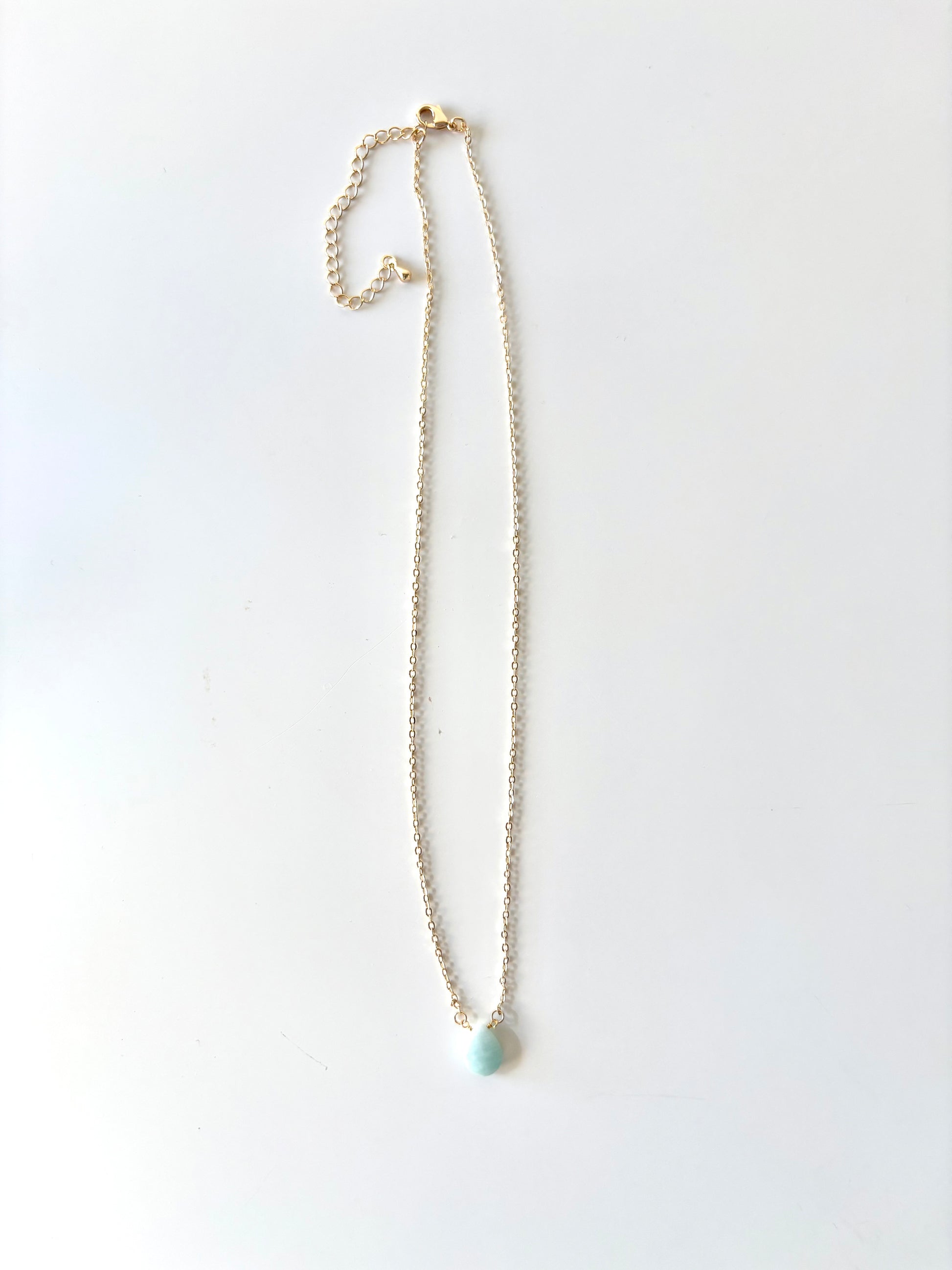 - Dainty Amazonite Pendant Necklace — Handcrafted on a 14k gold-filled 16” chain with a 3” extender, so it can be worn at just the perfect length.